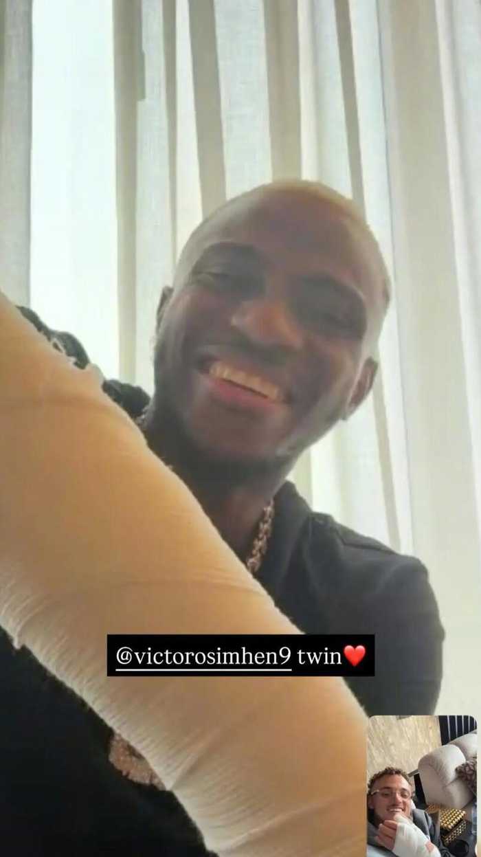 在接受完各自的初步医疗处理后,诺阿-朗和奥斯梅恩进行了一次视频连线,视频里两个人手上和手臂上都缠着绷带。