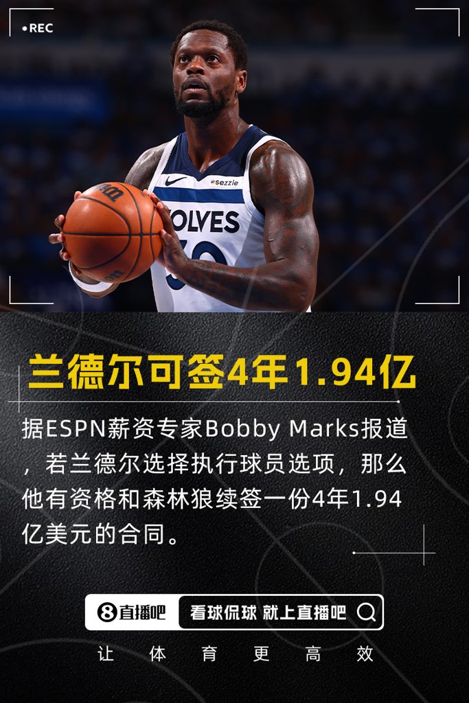 如果兰德尔选择执行球员选项,他有资格和森林狼续签一份4年1.94亿美元的合同。2025-26赛季薪资是4300万美元,比现合同最后一年的薪资高出约1300万美元。