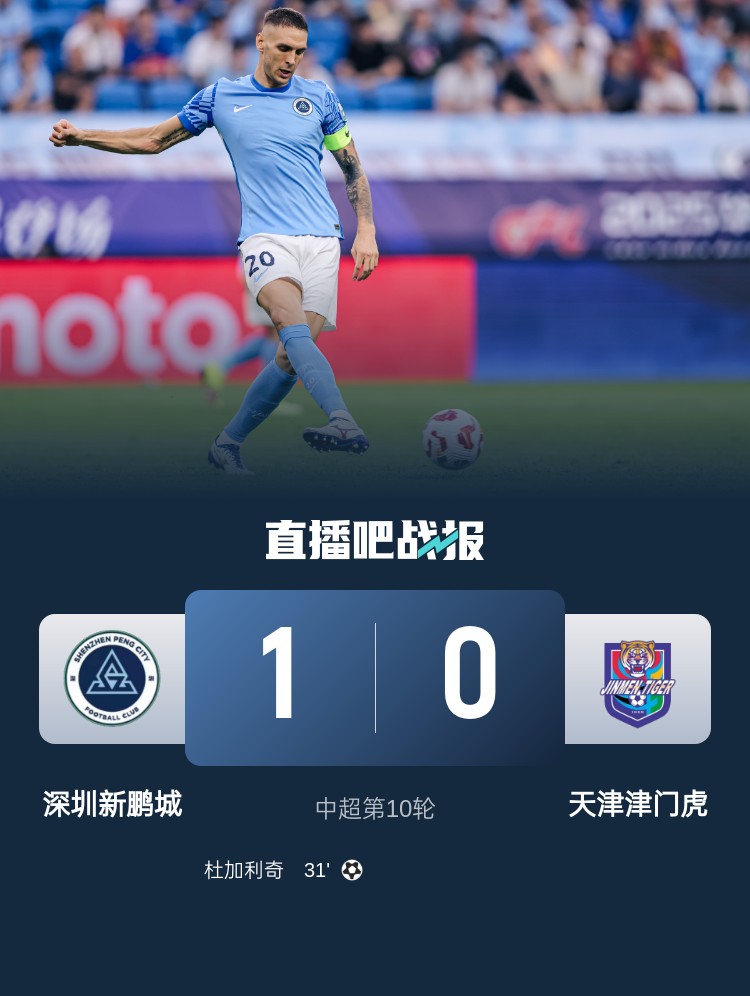 5月1日讯 北京时间5月1日18:30,中超联赛第10轮深圳新鹏城迎战天津津门虎的比赛在深圳市体育场进行,上半场方镜淇出击失误杜加利奇头球首开记录,津门虎0射正,半场结束,深圳1-0津门虎。下半场埃杜加西亚失单刀,最终深圳1-0津门虎暂升第11,津门虎两连败积13分仍居第6。